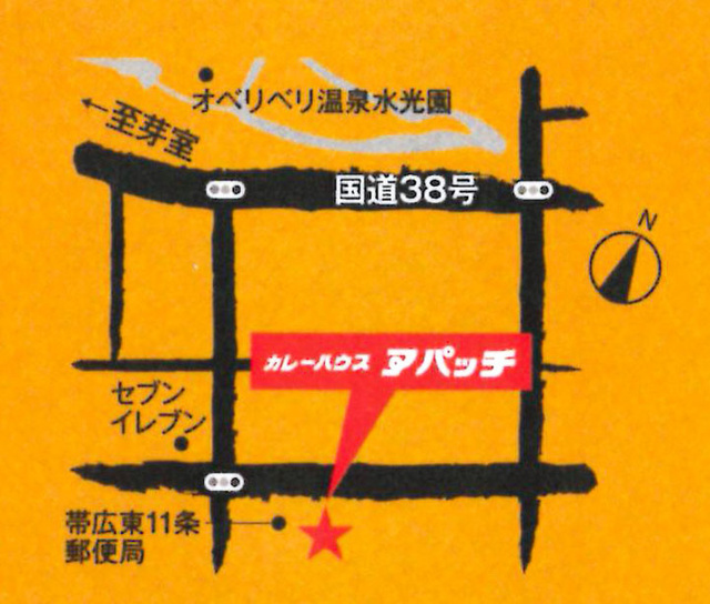 店主の櫻井さんが平原通りの藤丸のそばに「カレーハウスアパッチ」をオープンさせたのが1991年。15年目の2005年に国道38号線沿いの東11条に移転。そこは焼肉屋さんの店先を借りて一人で調理・接客とこなして営業していました。