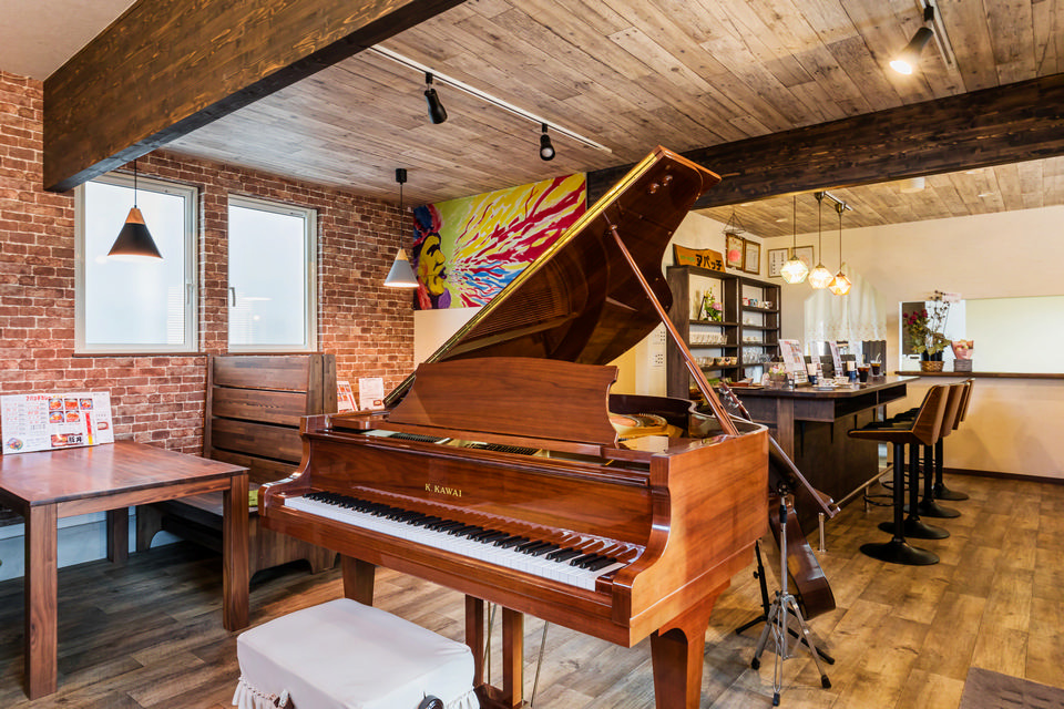 店を入った正面には、牧野さんが持っているグランドピアノがデンと置いてあります。グランドピアノのあるカレー屋さん、いいじゃないですか。