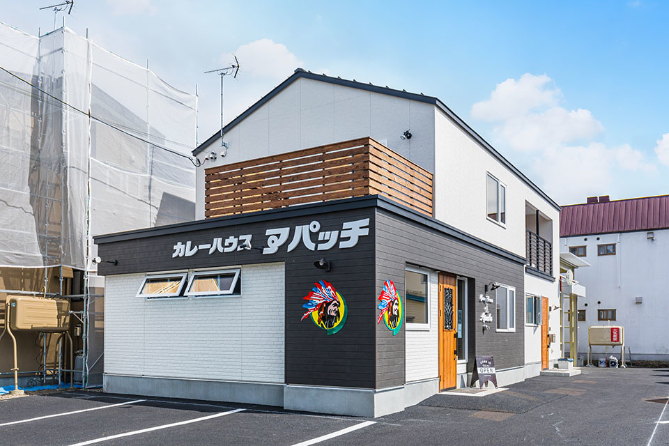 この店舗兼自宅を設計・施工したのが帯広市の(有)ウッドライフ。カレーハウスアパッチが東11条に移転した2005年に創業した、比較的新しい工務店です。十勝ツーバイフォー協会に加盟し、社長の富原利光さんは、若手経営者の1人として活発に活動しています。