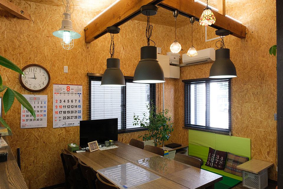 ウッドライフの打ち合わせスペースはカフェっぽい内装で仕上げられている