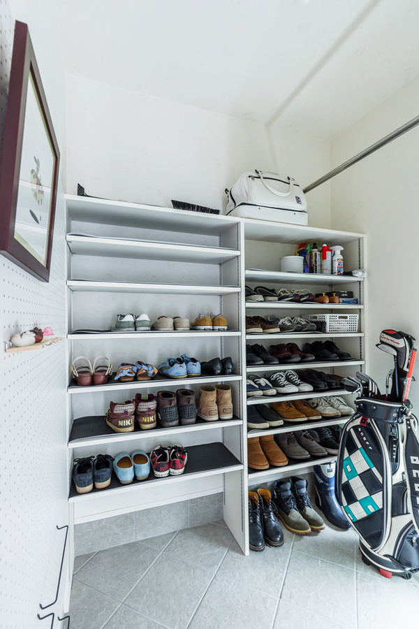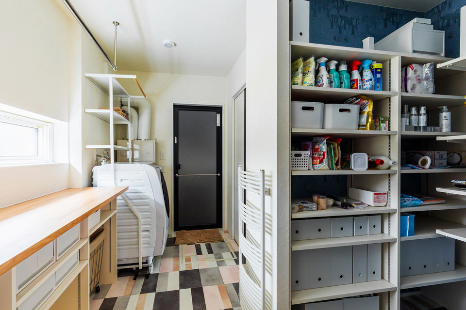 既製品だと収納方法に柔軟性がないため、造作で備え付けの棚をあちこちに作ってもらいました。夫婦共働きで家事にかける時間が限られていることもありますが、モノを見せない収納がスッキリしていて良いと思っていたからです。