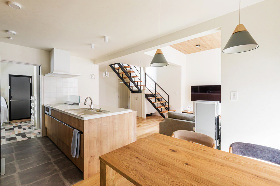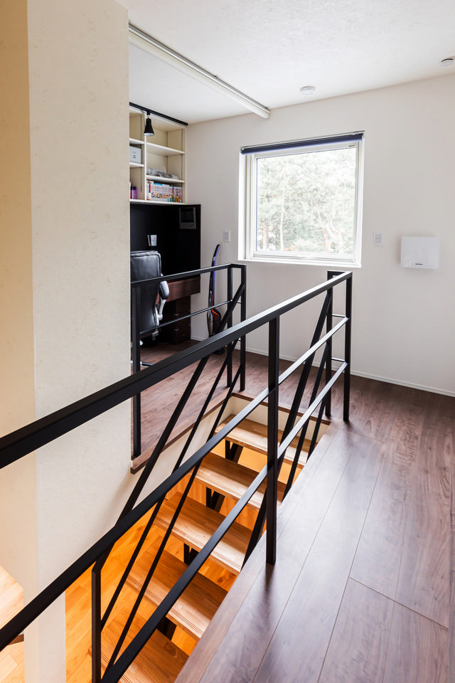Tさんは2階の書斎で仕事をすることも多いそうですが、奥さまはほぼ1階のみで生活しています。今は2人暮らしですが、将来子どもとコミュニケーションがとれるようにと考え、リビング階段もオーダーしました。キッチンから子どもが部屋に上がる様子が見えることが安心につながります。