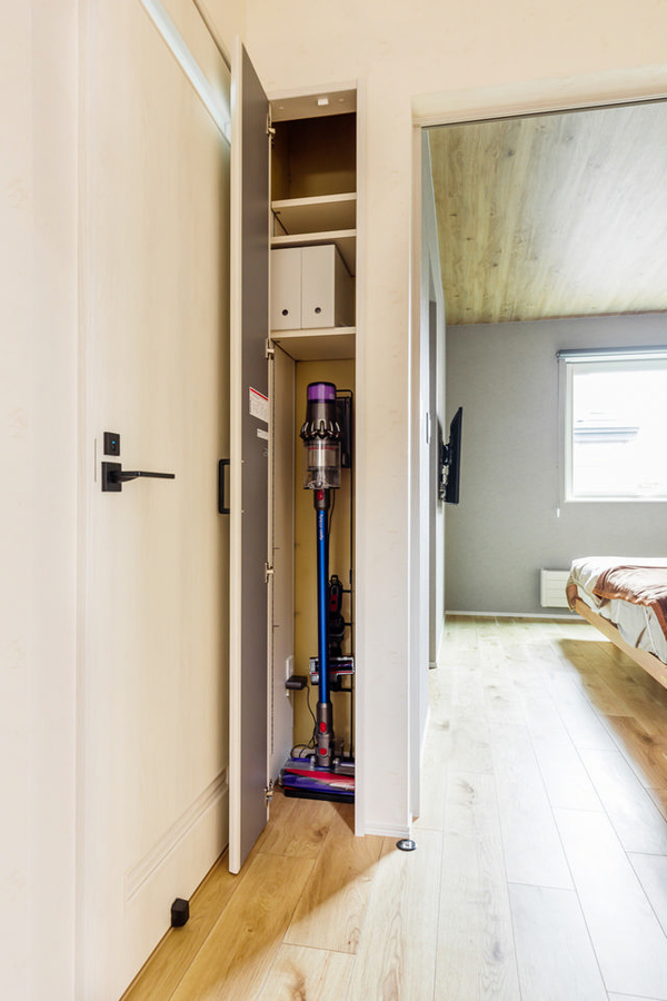 1階トイレと寝室の間にあるデッドスペースを活用した「ダイソン」入れ
