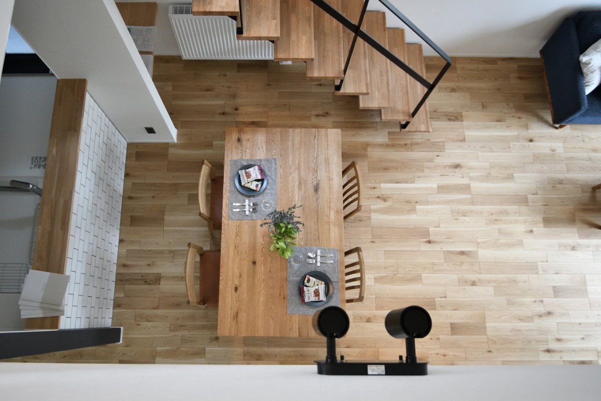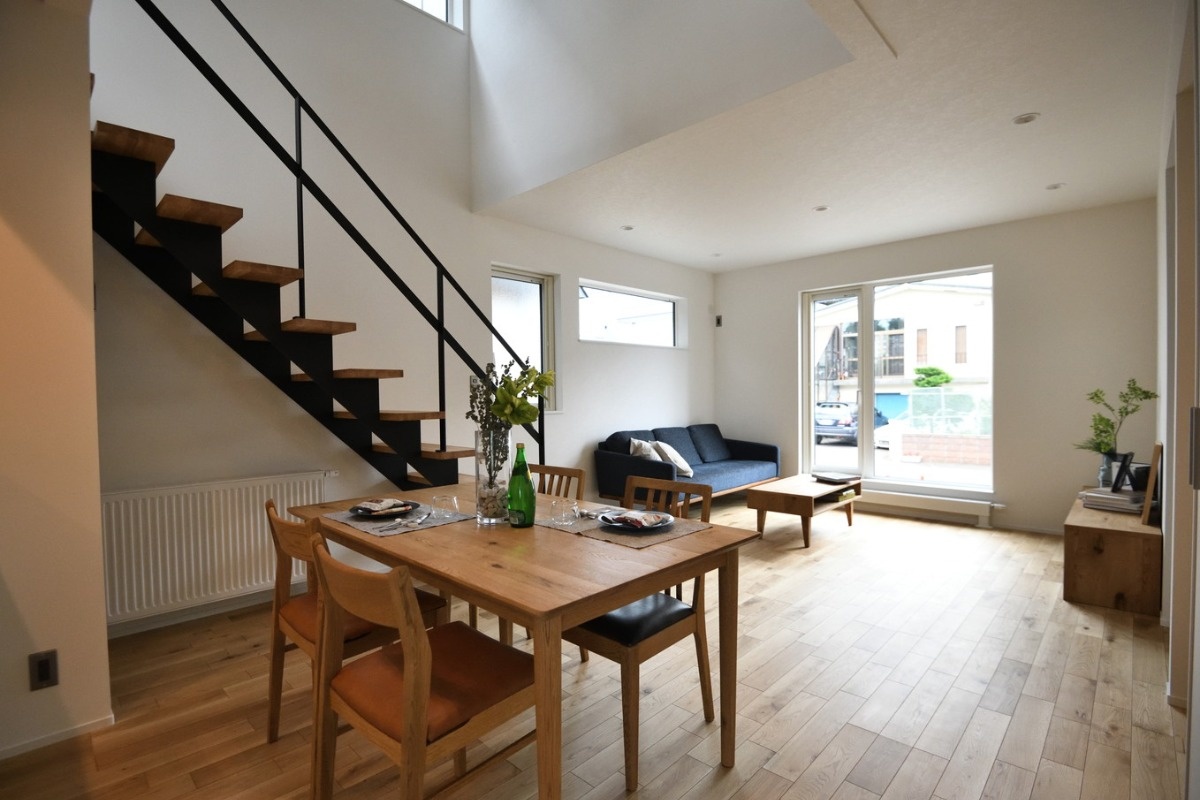 家族が一番長く過ごすLDKは、吹き抜けのダイニングを中心に伸びやかな空間が広がります。スリムになっても、居心地の良さはそのまま。