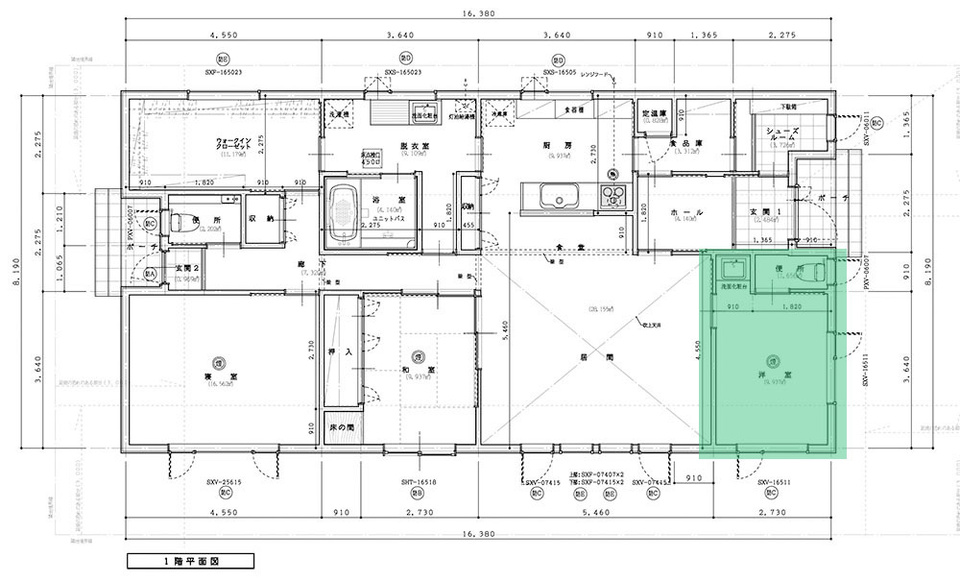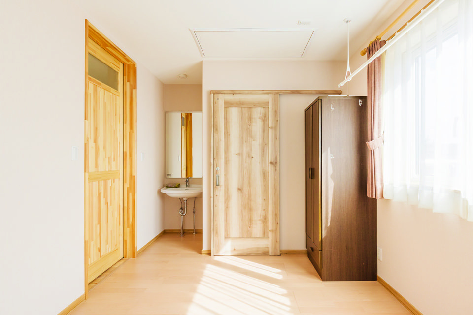当初は、奧さまのお母さまと同居予定だったNさん。プラン進行中にお母さまが体調を崩され、施設で療養することになったそうですが、泊りに来た時にも使えるようにと、リビング横の洋室には洗面・トイレを希望しました。