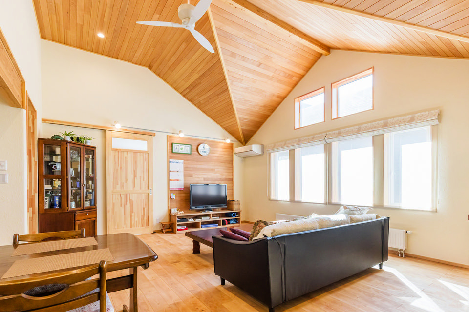 1986年の創業以来、十勝地方の厳しい気候に対応した高断熱・高気密の家づくりを続けてきたソトシロ建設は、ツーバイフォー工法を得意とし、最新の建築技術を採り入れながら、自然素材をふんだんに使った家づくりで人気の工務店です。今回は親御さんの介護にも適した暮らしやすい平屋建ての新居を叶えた清水町のNさんのお宅を訪ねました。