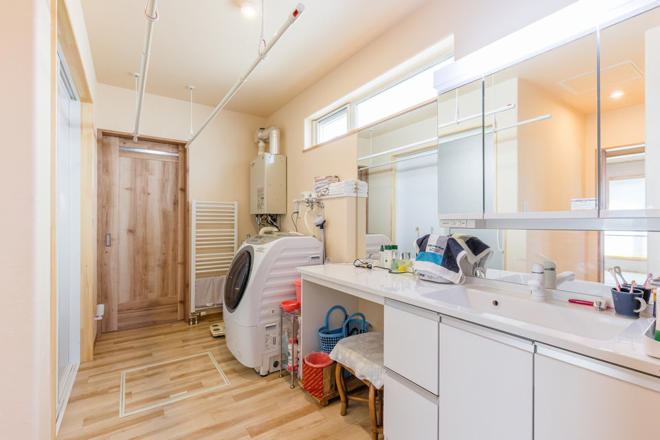 奧さま「以前の住まいはにおいが気になりましたが、ソトシロさんの家は室内壁に珪藻土を使っているので、今はそうしたことがなく、空気が良くなったと思います。広くしてもらった洗面所はとても便利で、家事がはかどります」。