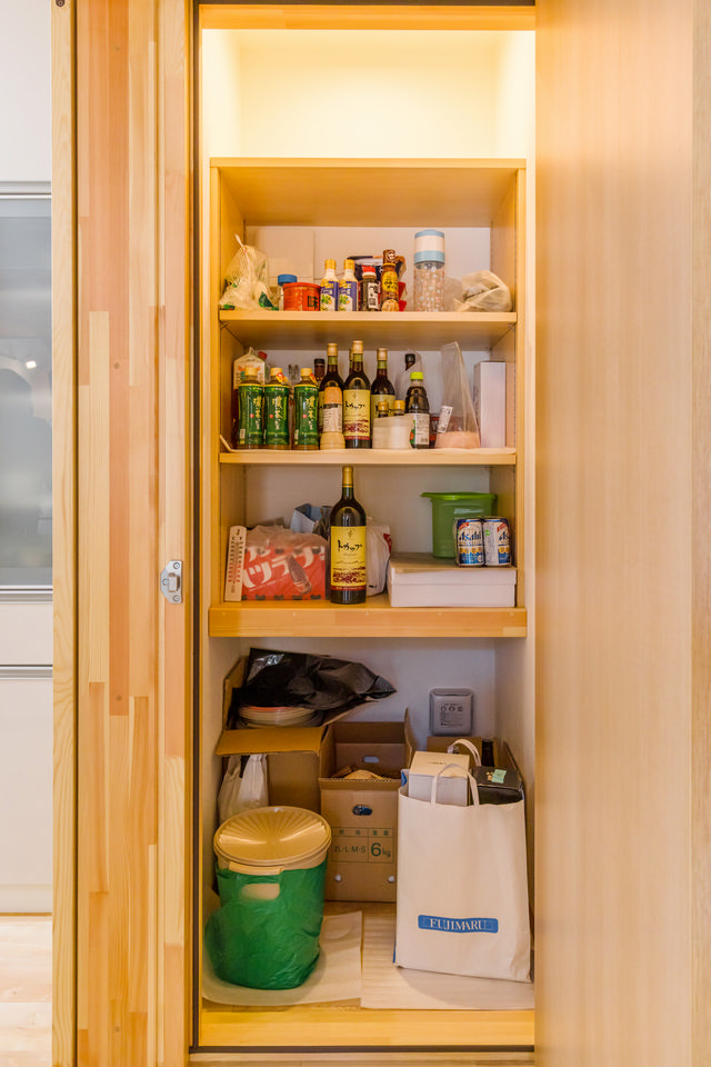 さらにパントリー(食品庫)内には、定温庫も完備していて、特に室内が温かく保たれる冬季には重宝しそう。味噌や醤油などの発酵食品の保存にも便利です。