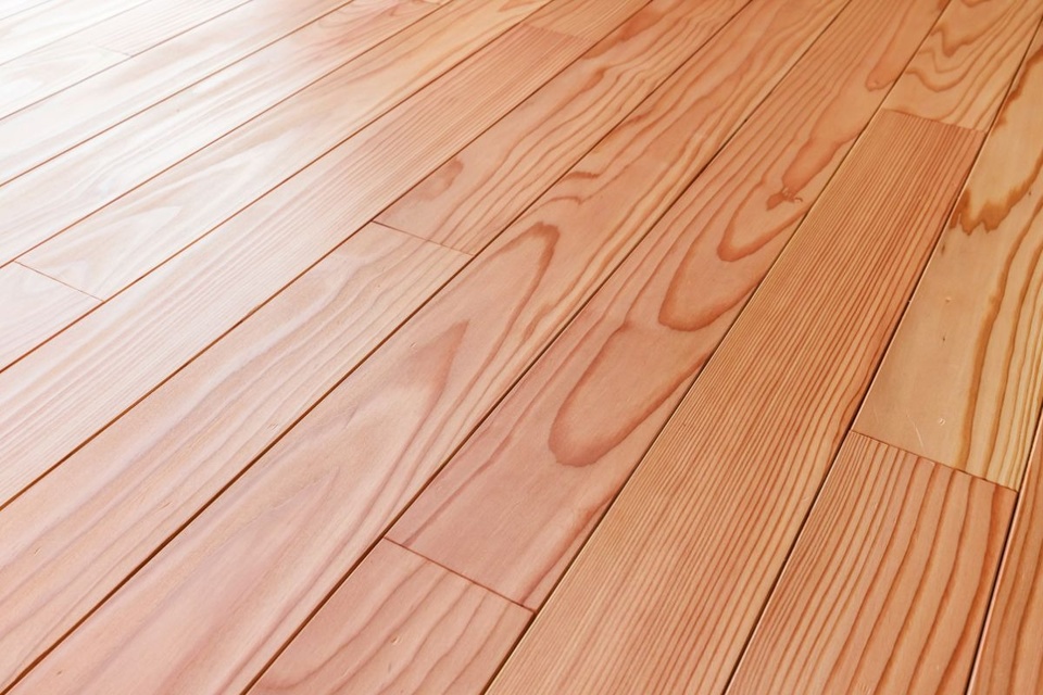 床は、やわらかく温かみのあるカラマツの無垢材。