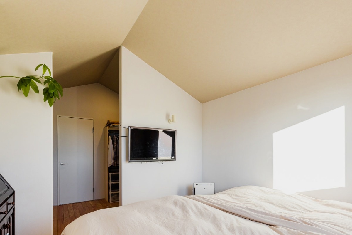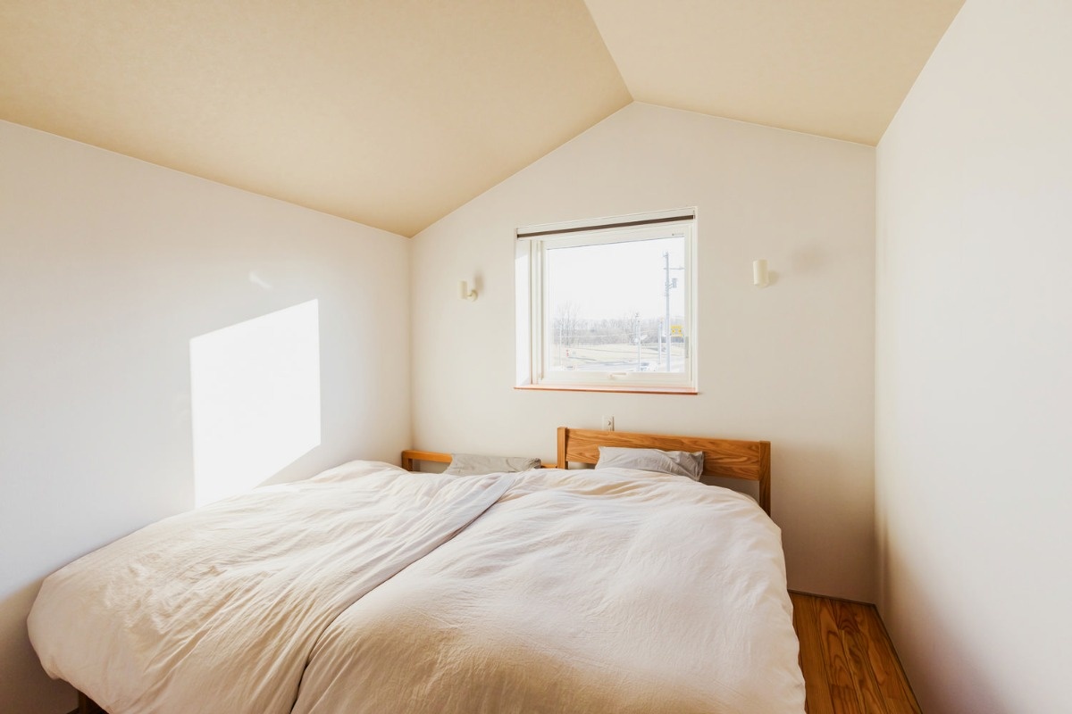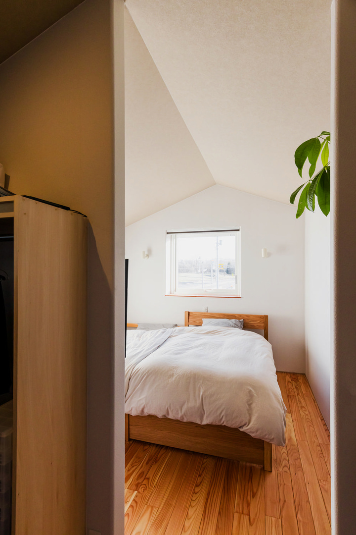 2階にはフリースペースとして多目的に利用できるホールとふたつの子ども部屋、寝室があります。こちらは主寝室。