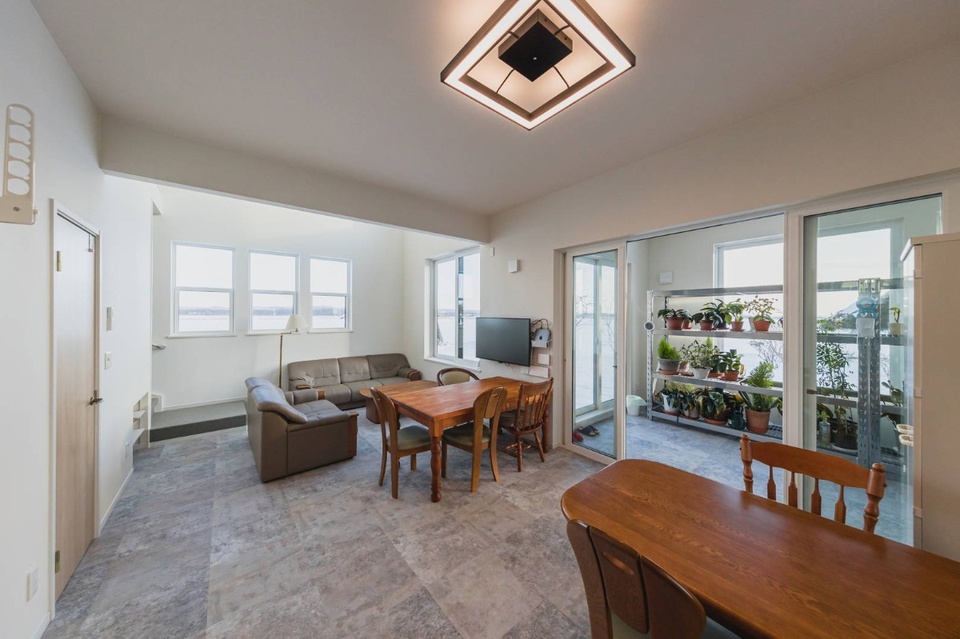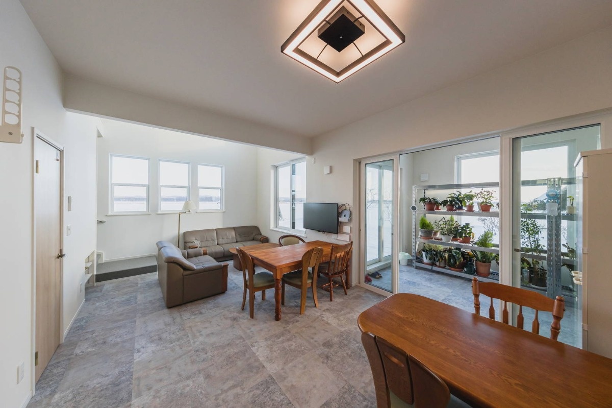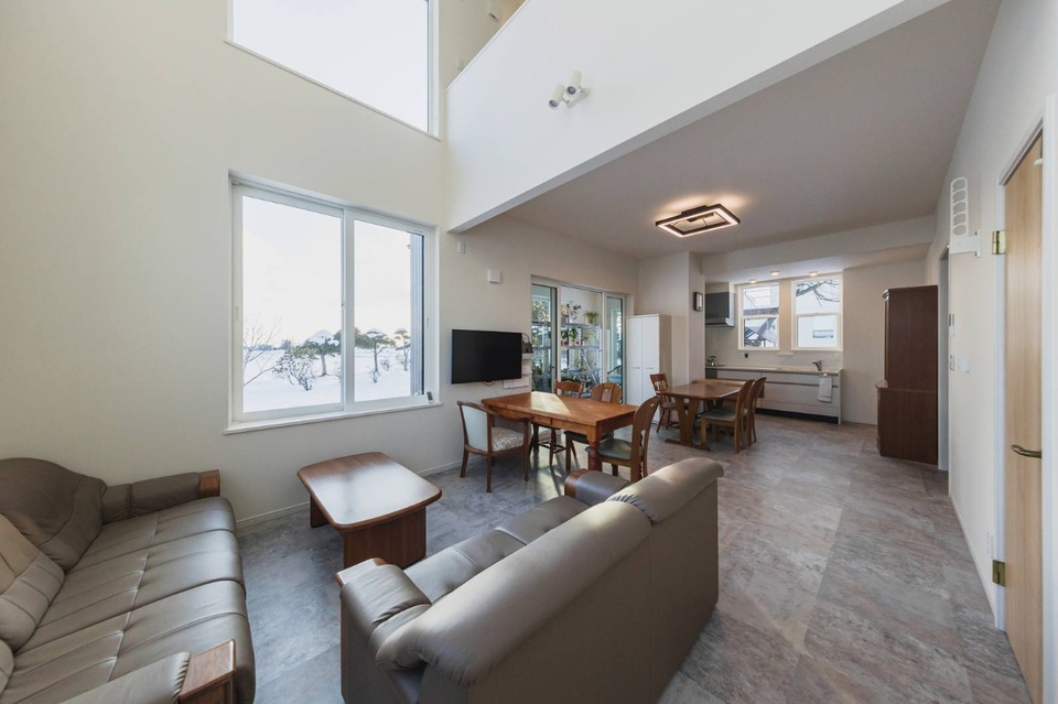 さて、扉を開けるとそこは広々としたLDK。大人数がリラックスして会話を楽しめる造りになっています。ゆくゆくは土足で気軽に入れるようにして、応接室のように使いたいと考えているそうです。