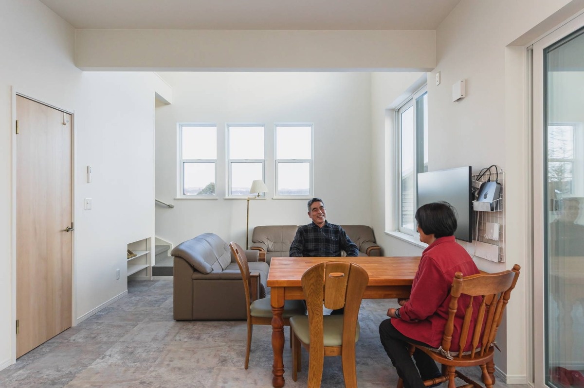 カーリングのインストラクターでもある山川さん、奥様の真幸子さんとの出会いもカーリングでした。英会話という共通の趣味もあるおふたりは取材時も息がぴったり。家を建てたきっかけについて「薪ボイラーを使ってみたかった。新しいものが好きなのかもね」とふり返る山川さんの話に続けて、真幸子さんが「赤坂さん(赤坂正社長)と5分くらい立ち話をしていたと思ったら、『家、建てることにしたから』と帰ってきたの」と微笑みます。