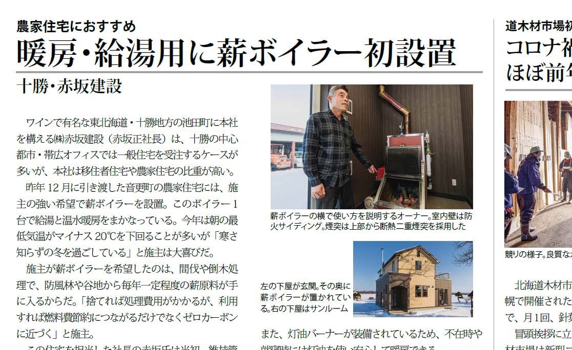 北海道では導入例が少ないという薪ボイラーですが、性能や使い心地はどうなのでしょうか? 北海道住宅新聞2021年2月5日号から記事をご紹介します。