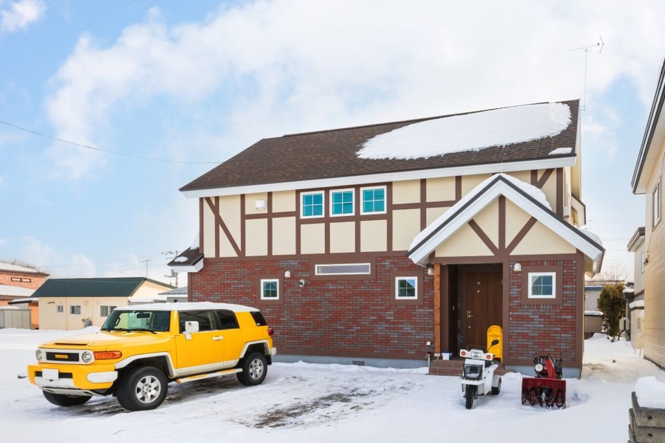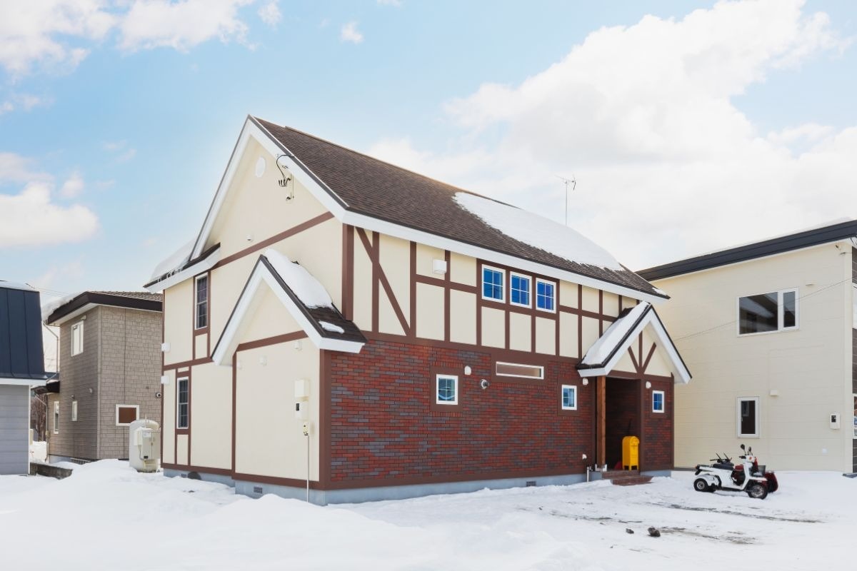 帯広市内の閑静な住宅街に建つU邸は、カフェやペンションのような印象的な外観のお家です。