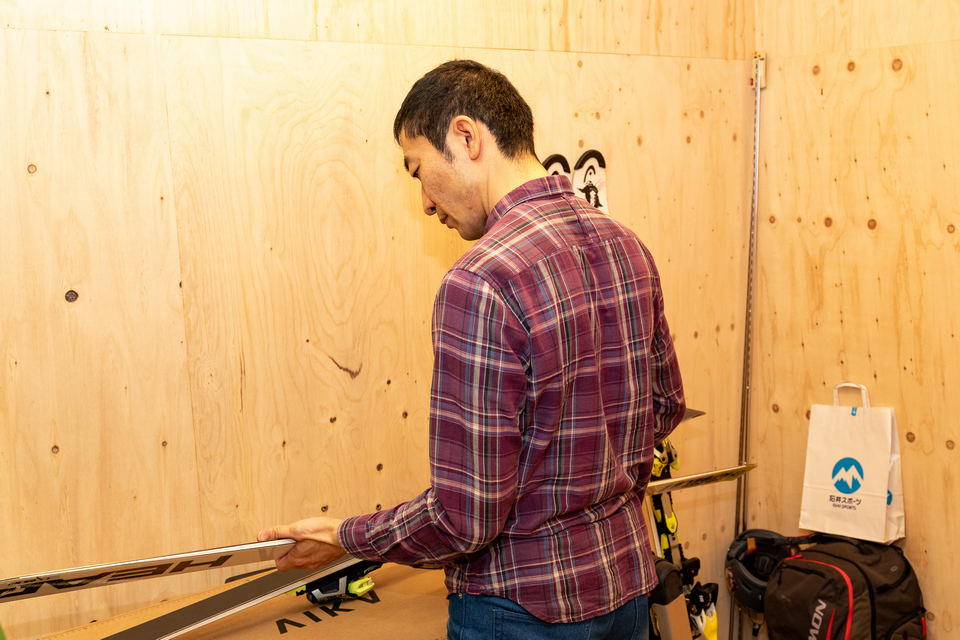 玄関の土間続きにスキーの手入れをするための趣味室を配置
