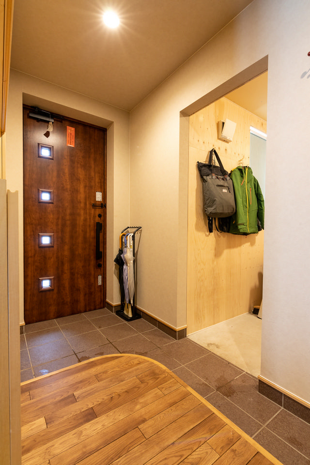Tさんの趣味のひとつがスキー、多いときは1シーズンに50日ほどスキー場へ足を運ぶそうです。そこで玄関土間から直接入れるスキールームを作りました。「これから作業台や収納などをDIYしようと思っています」とTさん。