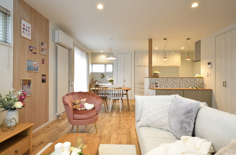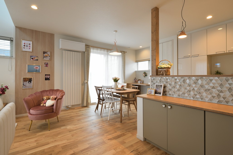 「Lib+」は、無垢床などの天然素材やニュアンスカラーをふんだんに使い、ナチュラルな中に可愛らしさと落ち着きをプラス。さらに居心地の良さにこだわりました。
