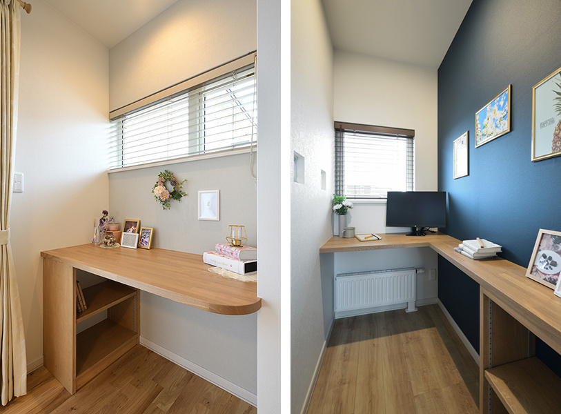 福嶋さん イネスホームも導入していますが、テレワークを採用した働き方が増えています。同じ家の中でも、気分や仕事の内容によって場所を変えられるよう、いくつかテレワークスペースをつくりました。