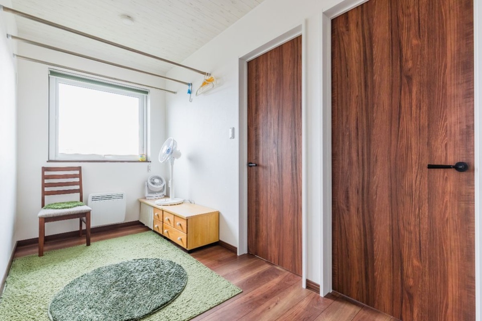 シーツも干せる二階のホール。真冬も洗濯物を干す場所に困らず、来客の目に入ることもありません。