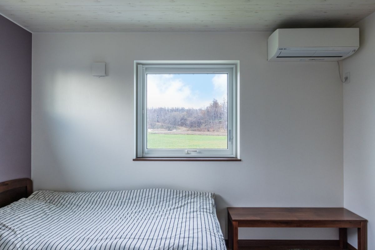 リビングの窓は同じ大きさのものが三つ並んだデザイン。大きな窓とはまた違った、北国らしい心地よさを感じます。