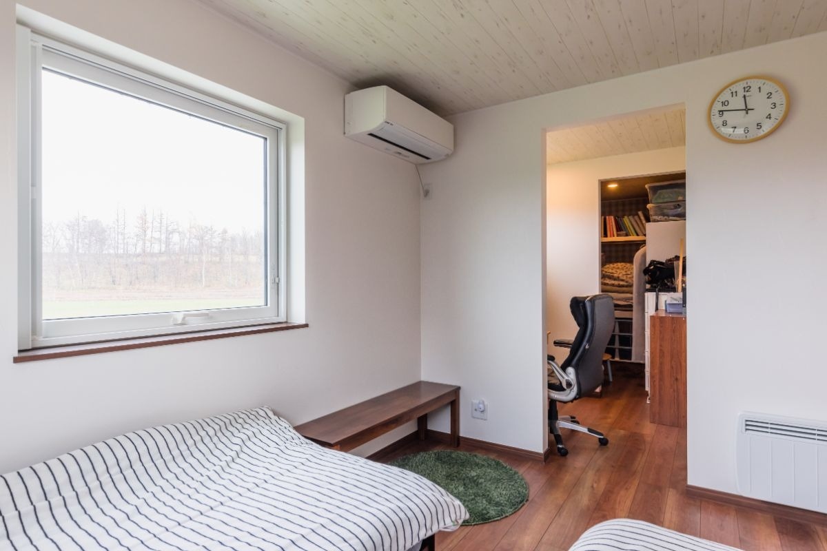 左奥には農場ボランティアが泊まれるよう居室とバス・トイレも完備しています。