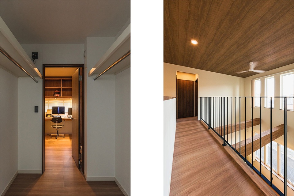 2階のウォークインクローゼットは、書斎、寝室のどちらからも入ることができる回遊式の間取りになっています。