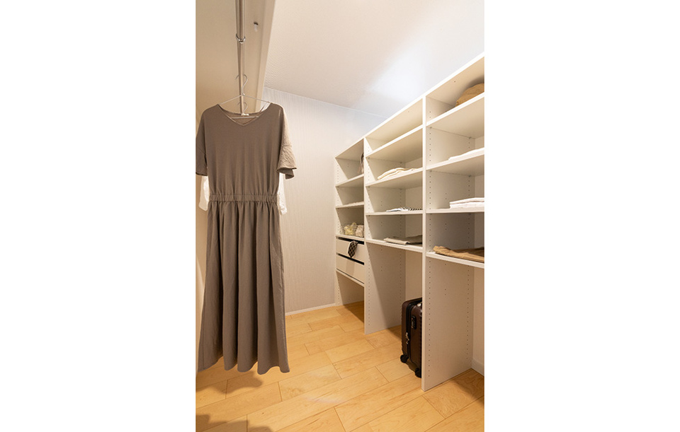 クローゼットの内部は稼働式ラックとハンガーポールで構成しています。