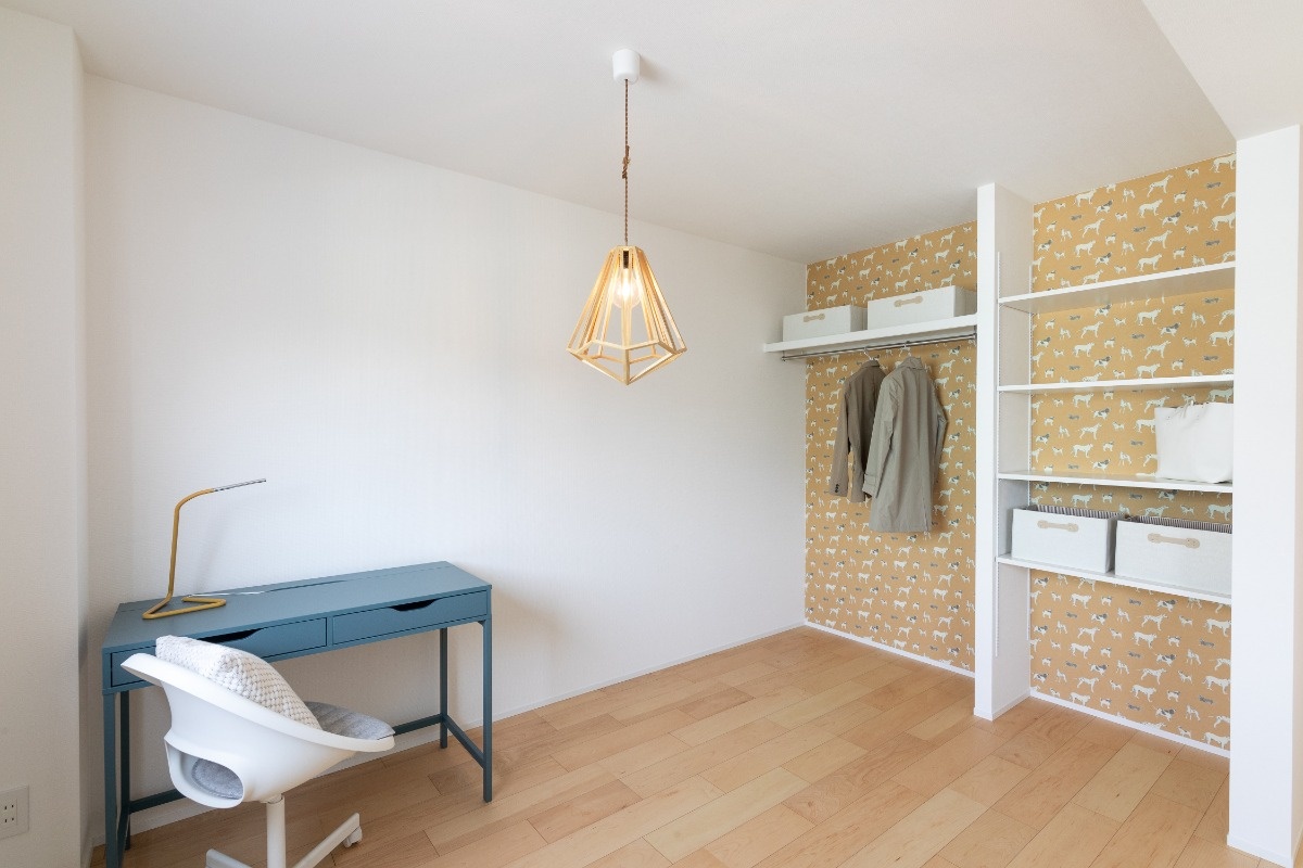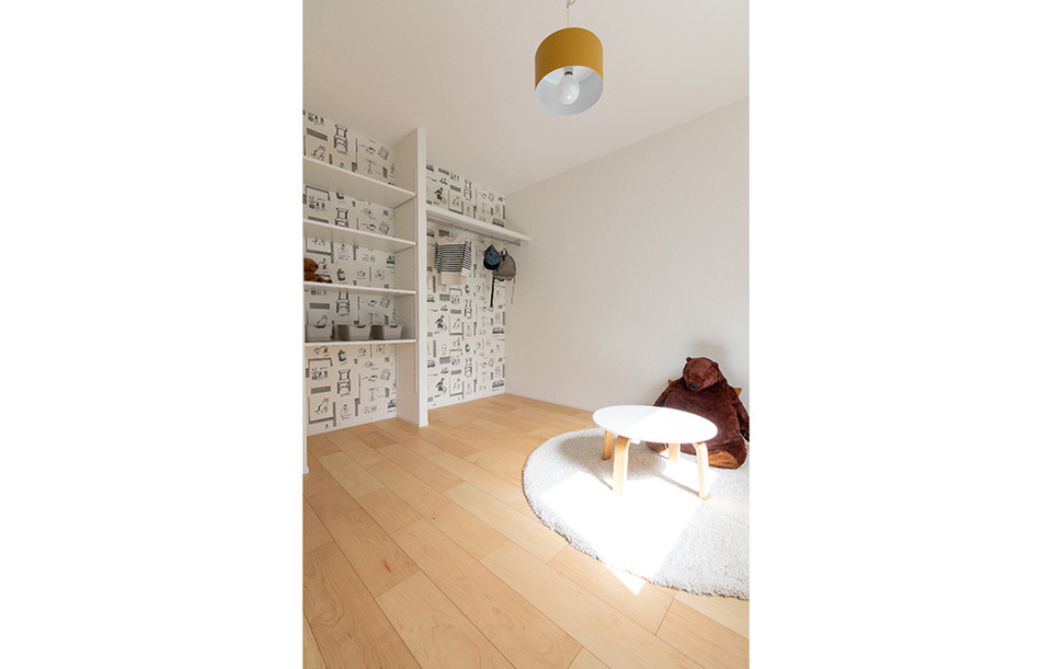 子ども部屋はオープンな収納で、クロス使いを楽しんで。