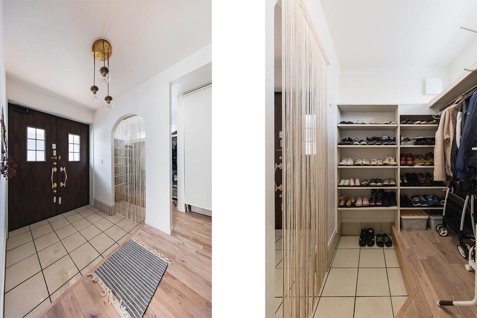 「玄関ドアを両開きで提案してくれたのも朝日社長。プラン提案の段階で、可愛い玄関になると感じましたし、お気に入りです」と奥さま。