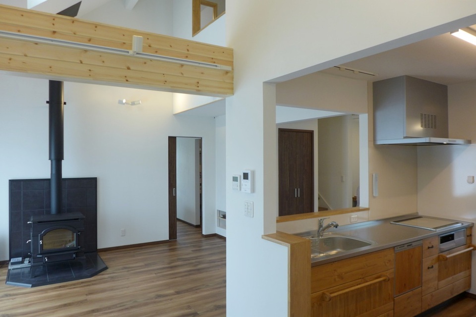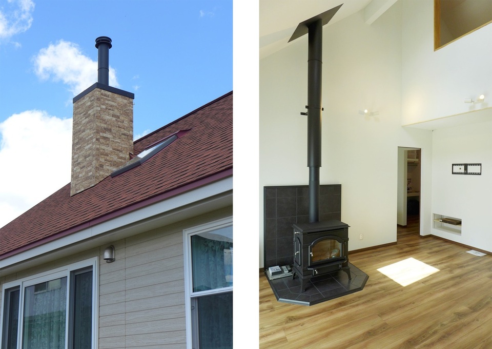 ツーバイシックス工法で、断熱気密にも優れた赤坂建設の建物ですが、Tさまのお宅では暖房器具は薪ストーブのみ。十分に暖かいとご満足いただいています。