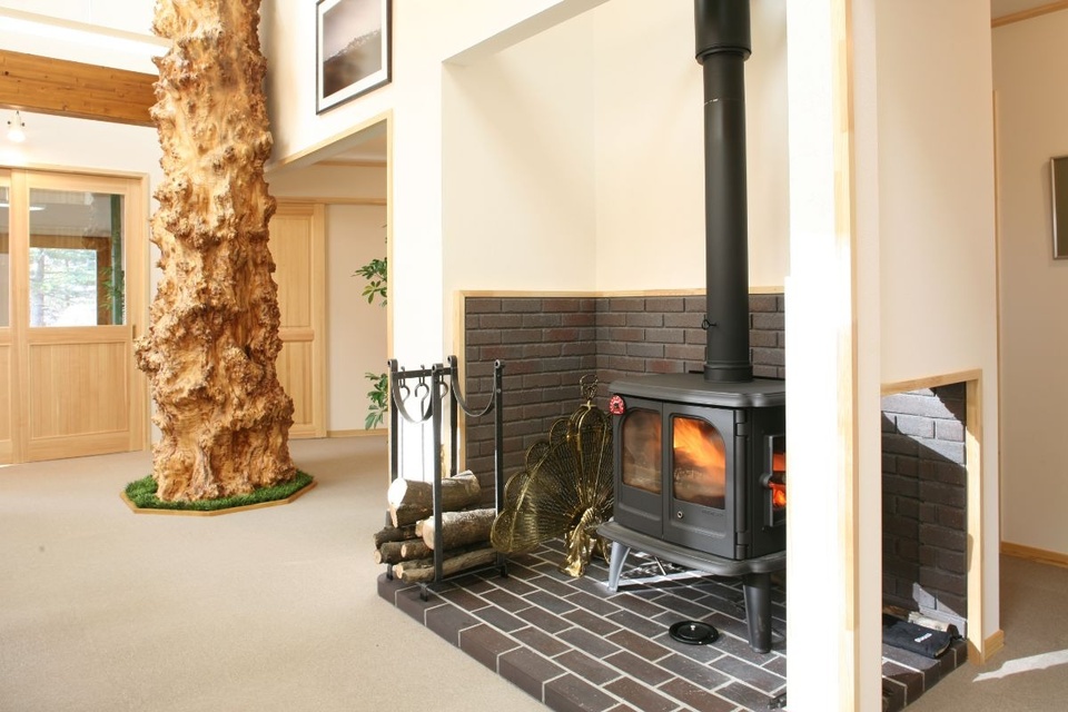 薪の材料となる豊富な木材があるので、暖房には薪ストーブを採用されました。木の温もりと薪ストーブの暖かさで、訪れるお客さまにも好評をいただいているようです。