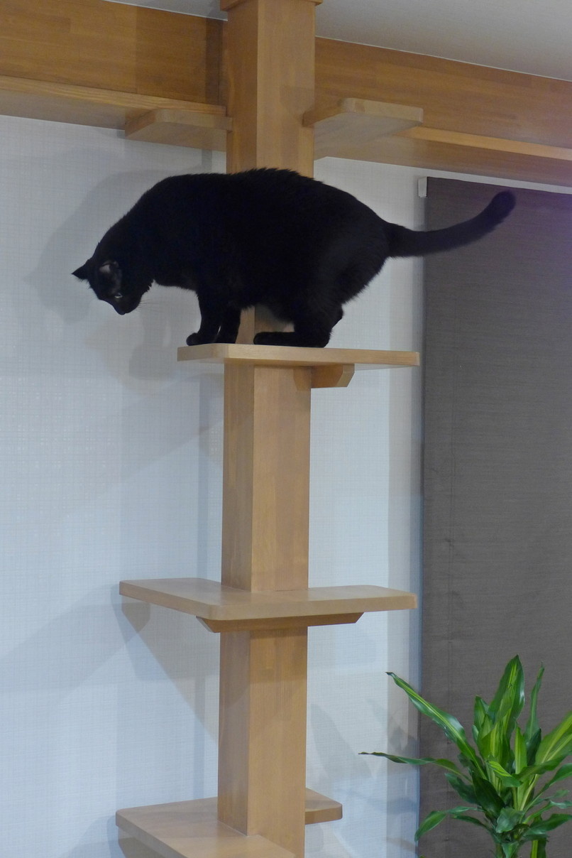 最初は恐る恐るだった猫ちゃんも、今ではこのステップタワーやキャットウォークが大のお気に入りです。