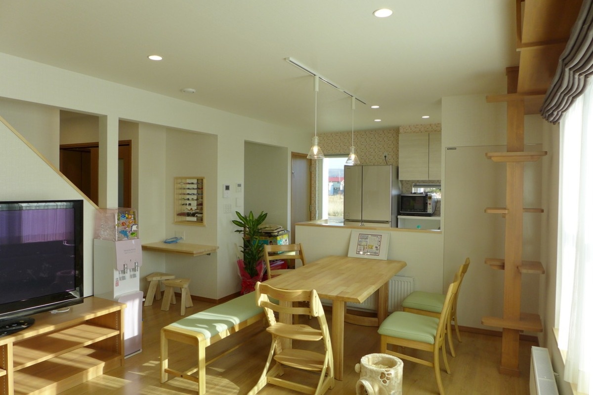 木の温もりあふれるLDK。共働きのSさまご夫妻は、家事動線がよく、暮らしやすい間取りを希望されていました。