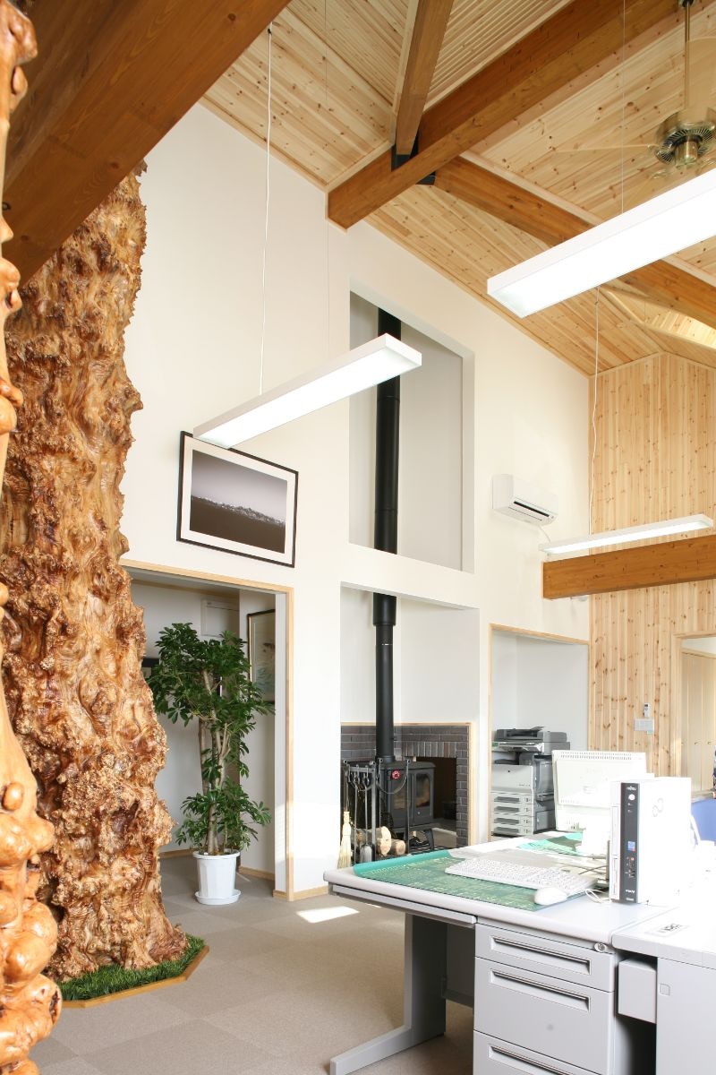 大空間に木の温もりあふれる事務所 帯広市/よつ葉樹木石園さま