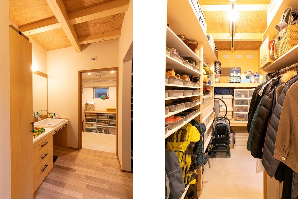 ご夫婦とも登山が好きで家族で山登りにも出かけるМさまファミリー。登山道具や自転車などアウトドアアイテムの収納確保も重要ポイントでした。