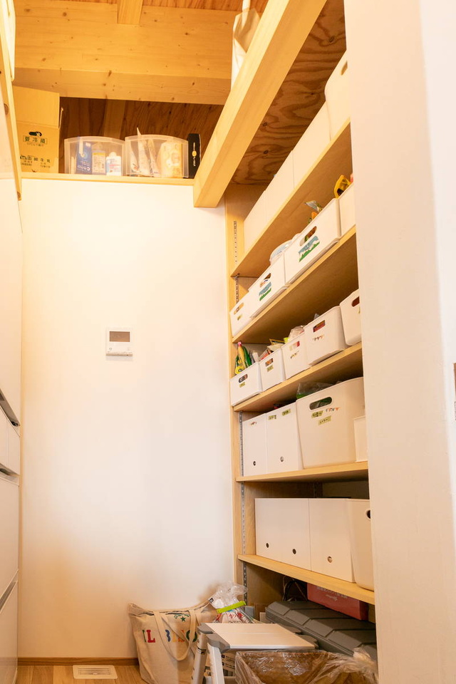 キッチンの奥にある食品庫(パントリー)に、食材、調味料などに加え、冷蔵庫も入っているからです。