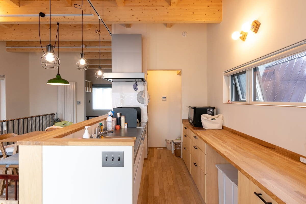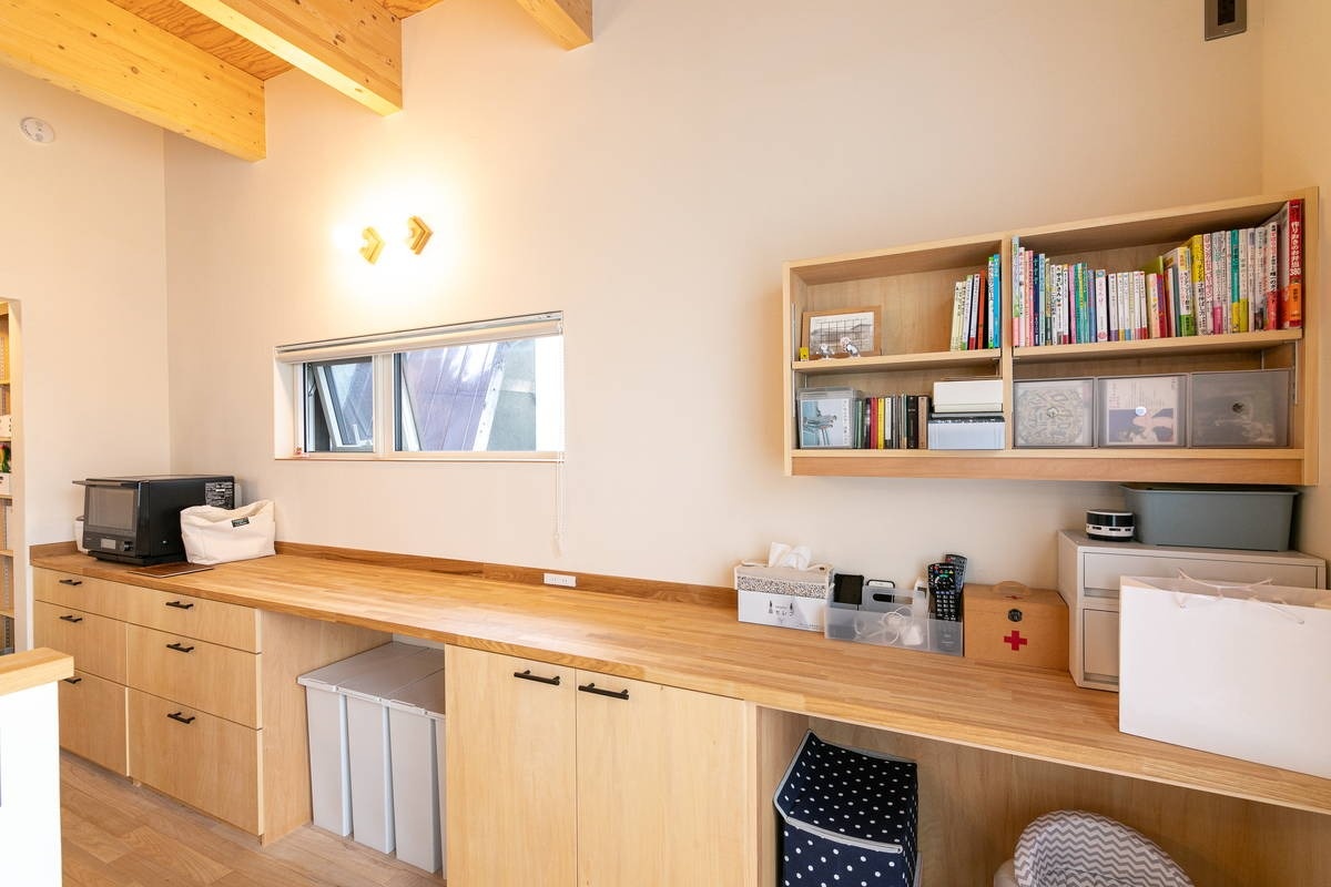 キッチンの背後には、大工さんが造作したカウンターと収納も。