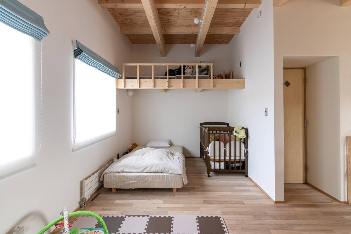 間仕切り代わりの家具を置けば、2部屋に分けることもできるように両側に窓やロフトを設置。ロフトを設けることで、ベッドや収納など、空間を立体的に有効活用できます。