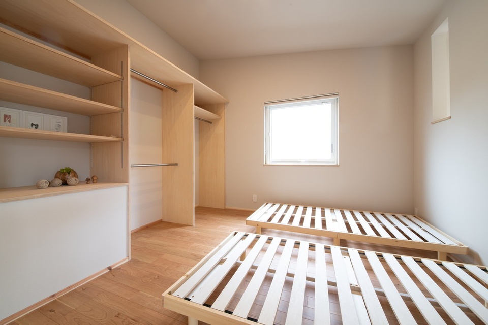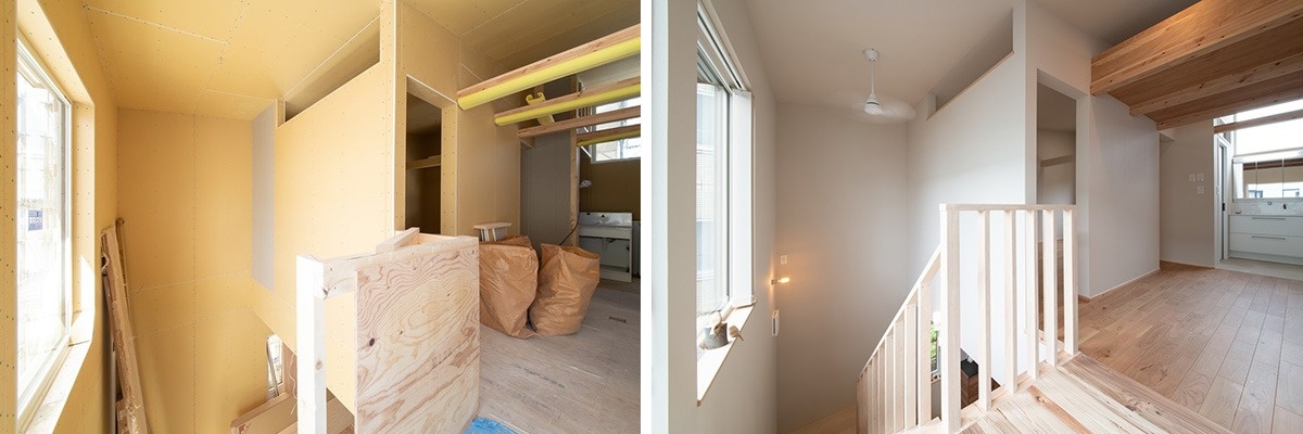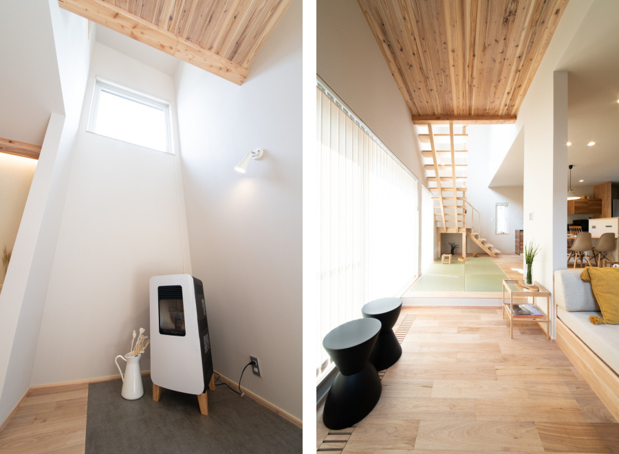 こちらはペレットストーブの吹き抜けに面した居室。右手に開口部が見えます。