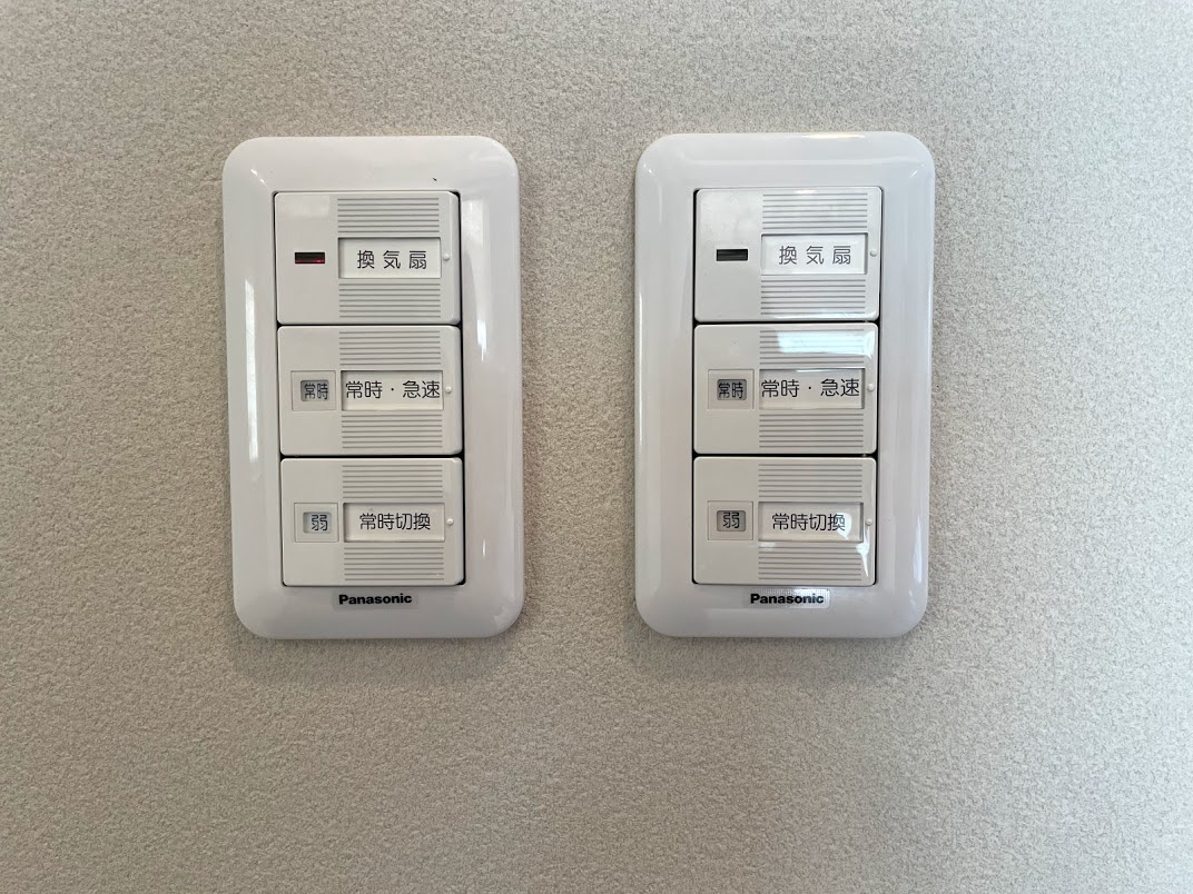 壁には段階ごとの調整スイッチが付いていて、DCモーターの出力を変えることができます。「何でも自動調節の時代ですが、こうやって人間の体感に合わせて自分で調節する暮らし方を自然と捉え、提案しています」と篠崎社長。