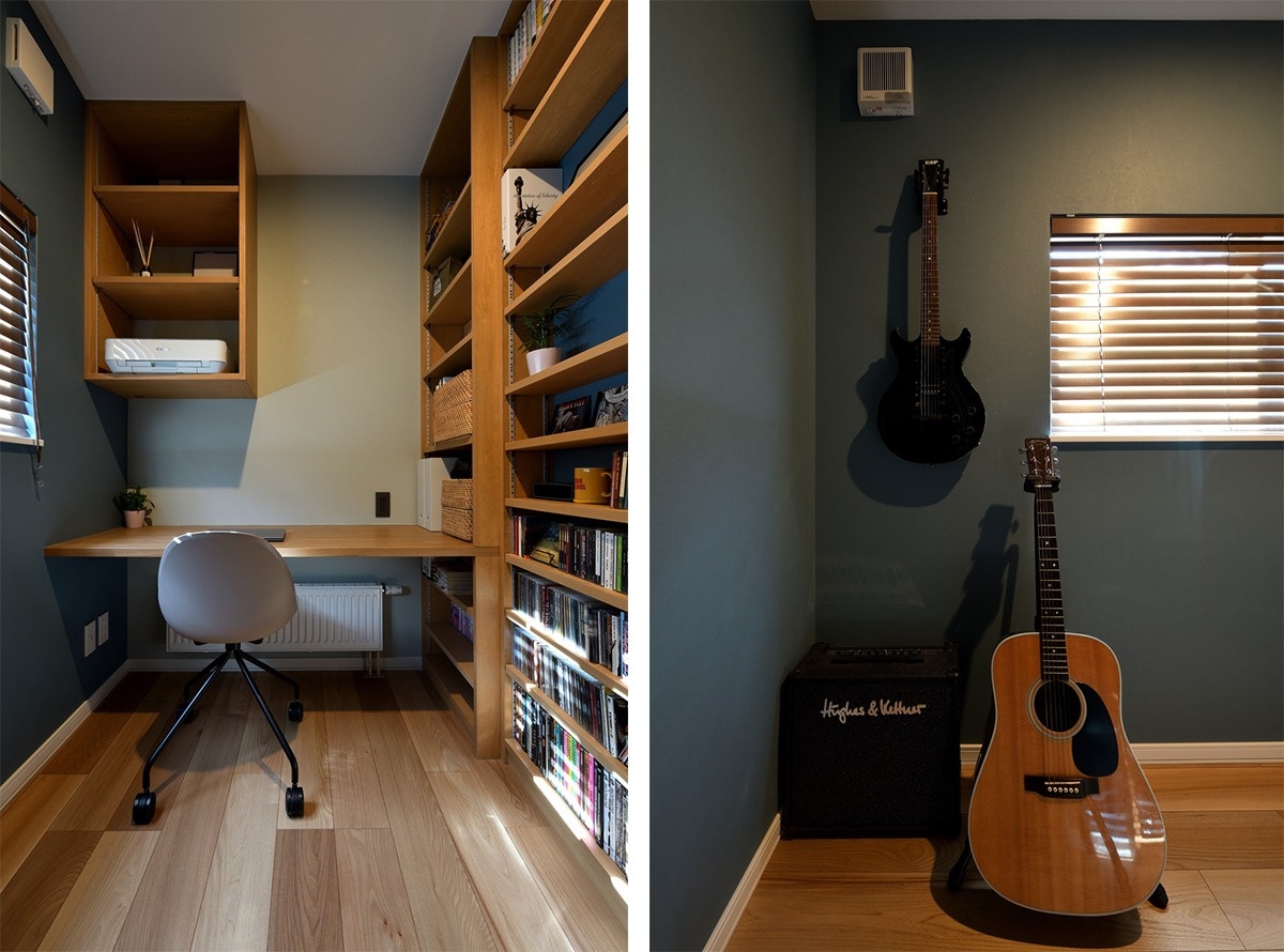 2つ目は音楽が趣味の主人の書斎です。防音も効いているので、音漏れの心配もなく、自分の時間を楽しめているようです。