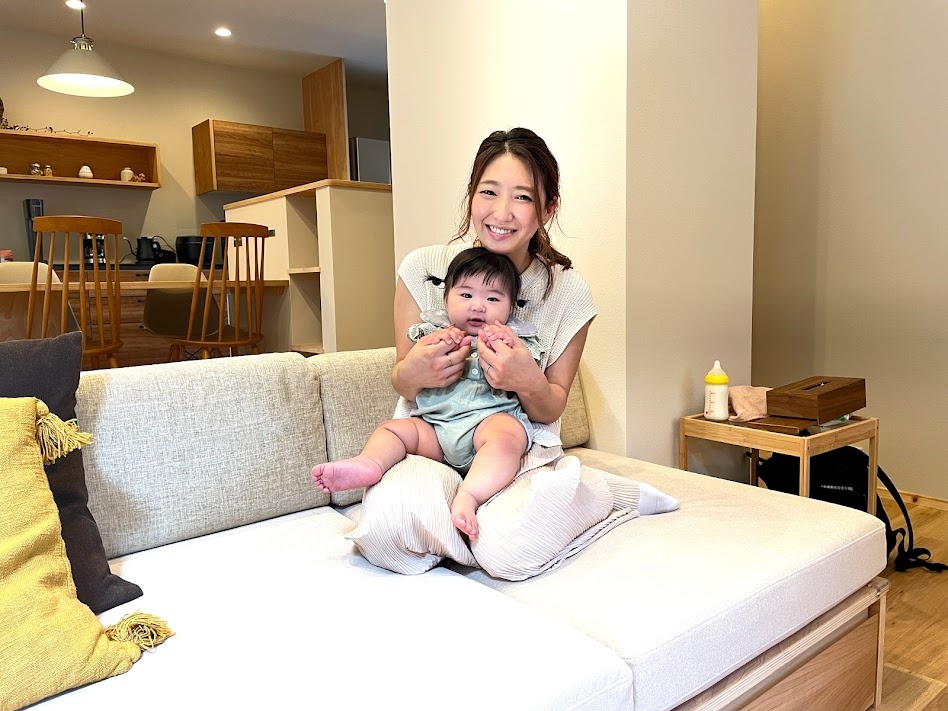 オーナーのFさんは現在、ご夫婦と生後半年になるお子さんの3人家族です。奥さまに、家づくりや実際の住み心地についてお話をうかがいます。
