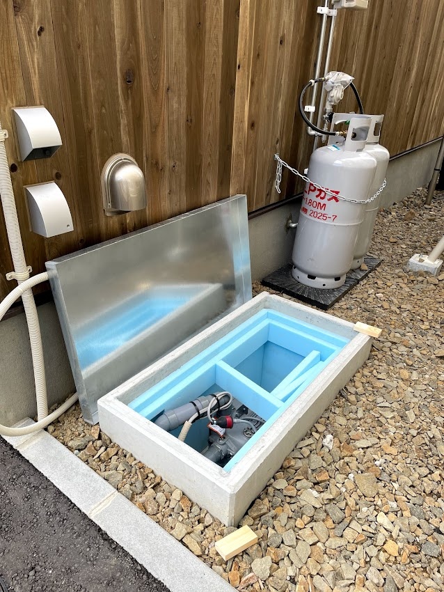 建物右側面にある地下水をくみ上げるポンプ槽。このポンプから地下水が融雪槽に送水されます。