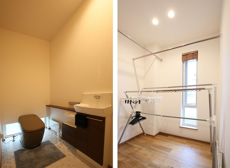 左/トイレは玄関ホールの突き当りに位置するおばあさまの個室からすぐの場所に設置しました。