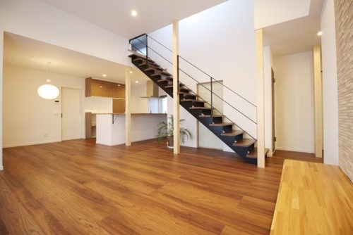 事例2 ホタテ漆喰の塗り壁、スケルトン階段の家