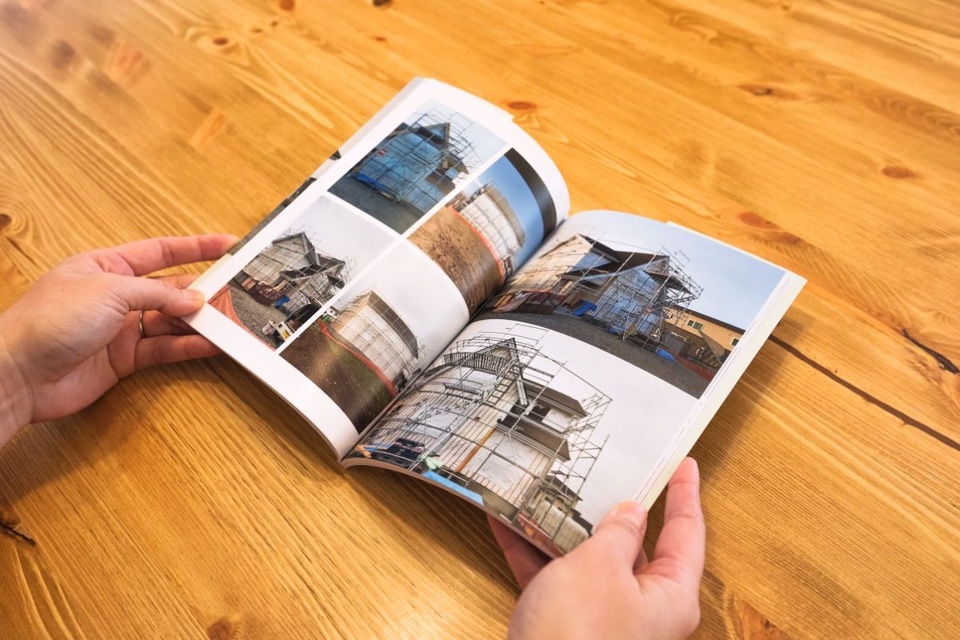 取材中、「自分で作ったんです」とYさんが見せてくれたのは、工事中の我が家の写真をまとめたフォトアルバム。「目の前で出来上がっていく感動がとても大きくて。大工さんもとても親切にしてくれたんです」と笑顔で話すご夫婦からは、家づくりが家族の歩みの大切な一部となっていることが感じられました。