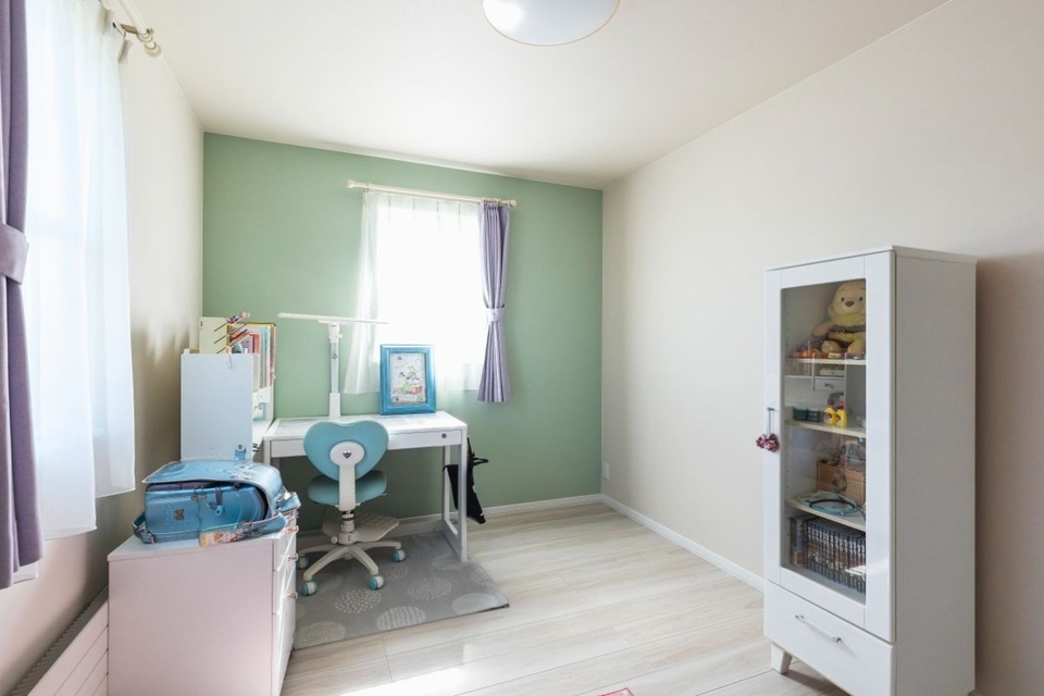 女の子の部屋は白を基調にしてやさしい雰囲気に仕上げました。
