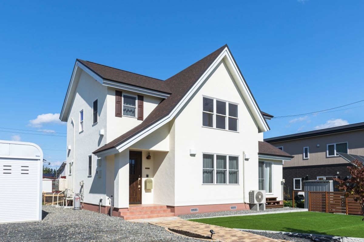 立体的な屋根のデザインが特徴のY邸。設計・施工は芽室町のカントリーヴィレッジです。