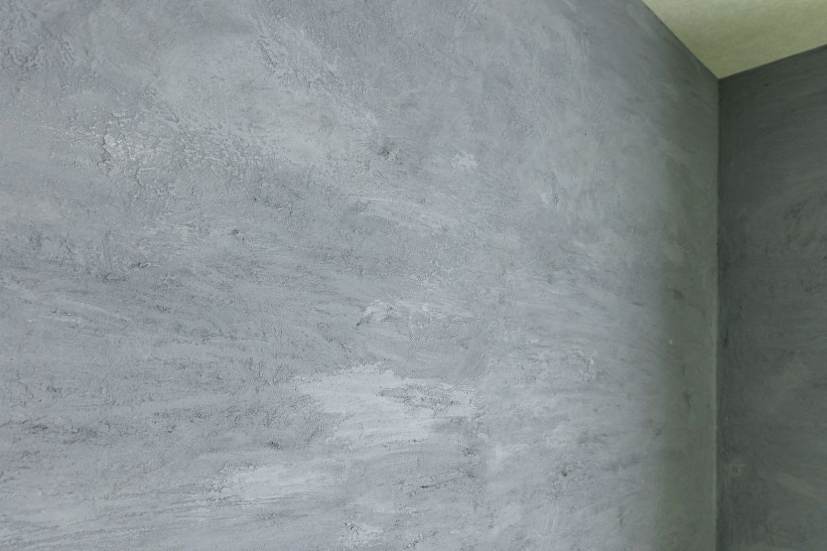 白い塗料に墨汁を混ぜて色味を調節したという壁。気になる作業時間については「みんなでやったので一日で終わりました。墨汁は黒に見えますが、壁に塗ると少し青みが出ました」(ご主人)