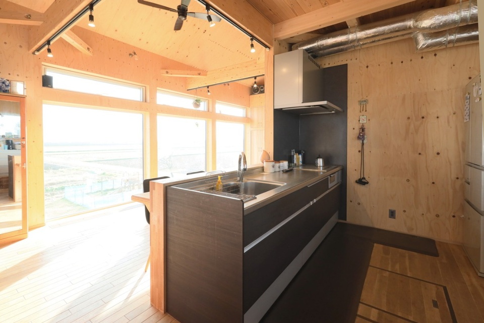 対面型のキッチンは、リクシルのショールームで選んだものです。ショールームへは辻野建設工業の担当者とともに足を運び、家事のしやすさや収納などをよく話し合いながら納得のいくものを厳選しました。